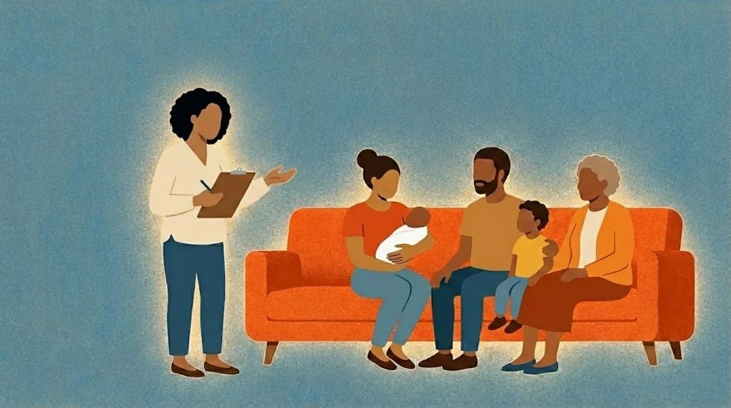 Provide emotional postpartum support and guidance for healing your changing body, caring for new baby, and navigating changing family dynamics